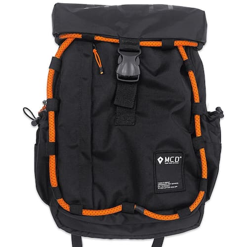 Mochila MCD desestruturada construída em nylon, com o bolso principal grade que conta com três compartimentos internos, sendo um desses para o notebook. Bolso secundário grande também e um bolso frontal com fechamentoem zíper para guardar acessórios. Conta também com bolsos nas laterais para guardar a sua garrafinhaAlém disso esse modelo conta com uma bag superior impermeável para objetos molhados. Além de tudo, conta com etiqueta frontal da marca, engate de pressão e uma corda super irada para dar um estilo único à peça.
