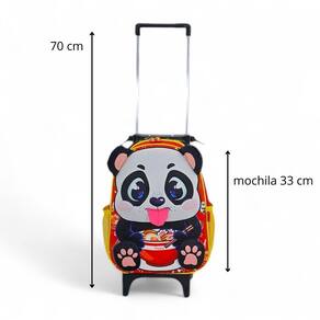 Medidas da mochila: 33 cm altura x 25 cm largura x 13 cm comprimentoCapacidade 10 L, 13polegadas - comporta cadernos brochura grandeSuporte com rodinhas de silicone e haste de alumínio Haste esticada com altura máxima de 70 cm.
