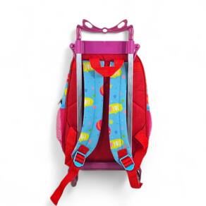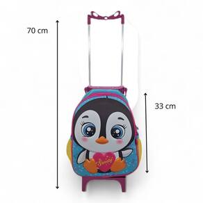 Medidas da mochila: 33 cm altura x 25 cm largura x 13 cm comprimentoCapacidade 10 L, 13polegadas - comporta cadernos brochura grandeSuporte com rodinhas de silicone e haste de alumínio Haste esticada com altura máxima de 70 cm.