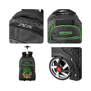 Com design inspirado nos ícones clássicos do universo Minecraft, ela conta com mega rodas que oferecem mais estabilidade e facilidade ao transportar, além de alça retrátil e alças acolchoadas para uso nas costas.