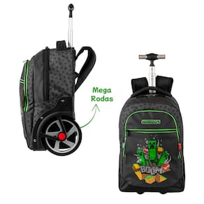 Mochila Mega Rodas Minecraft Icons Escolar Meninos Infantil - Cor: Preto