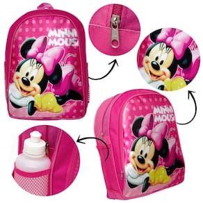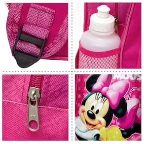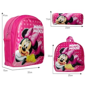 Kit Mochila Escolar Infantil Minnie Mouse, acompanha lancheira e estojo. Possui alça de mão reforçada. Agora você pode levar sua mochila no seu dia a dia ou acompanhar você na escola. Sua abertura maior se dá por zíper com puxador. Na parte de dentro possui amplo espaço para a guardar diversos materiais como cadernos, livros e estojos. Na parte da frente, possui bolso com zíper para a guardar pertences de menor tamanho e bolsos laterais.