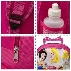 Kit Mochila Escolar Infantil Princesas Rodinhas, acompanha lancheira e estojo. Possui alça de mão reforçada. Agora você pode levar sua mochila no seu dia a dia ou acompanhar você na escola. Sua abertura maior se dá por zíper com puxador. Na parte de dentro possui amplo espaço para a guardar diversos materiais como cadernos, livros e estojos. Na parte da frente, possui bolso com zíper para a guardar pertences de menor tamanho e bolsos laterais.