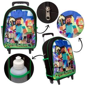 Mochila Menino Infantil Rodinha Minecraft Lancheira Estojo