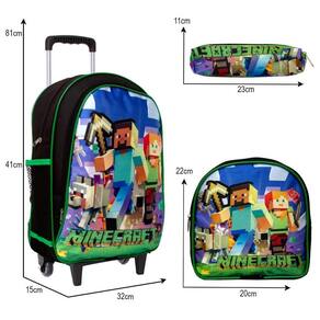 Mochila Menino Infantil Rodinha Minecraft Lancheira Estojo