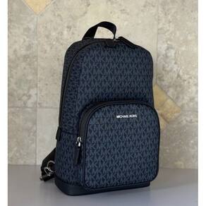 Novo com etiquetas. Mochila elegante de PVC acetinado azul com hardware de nylon e alça única ajustável. Possui fecho de zíper, interior espaçoso com forro de tecido e padrão exclusivo. Perfeito para negócios, eventos casuais, viagens ou ocasiões formais. Tamanho: Tamanho único. Dimensões: 13" A x 8,5" L x 4" D. Feito na Indonésia. Qualidade de design e construção durável.