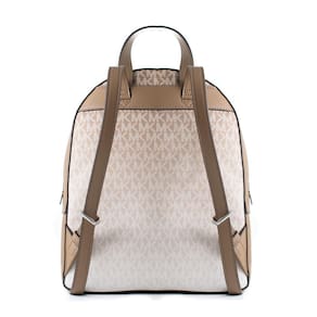 Lona com estampa de logotipo da mochila 90% lona revestida/10% poliéster Acabamento: 60% poliuretano/20% poliéster/20% algodão Hardware dourado 21 cm L x 30 cm A x 11 cm P Altura da alça: 5,7 cm Alça ajustável: 51 cm - 71 cm Detalhes externos: bolso frontal com zíper Detalhes interiores: bolso traseiro com zíper Forro: 100% poliéster Fecho de zíper