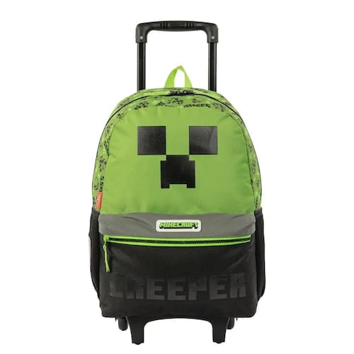 Principais Características: - Design exclusivo com o personagem Creeper no painel frontal - Detalhes quadriculados que remetem ao universo do game Minecraft - Bolso frontal com zíper reforçado e puxador em cadarço - Amplo compartimento central para organizar o material escolar - Versão com carrinho, com duas rodinhas e pés de apoio - Altura: 49 cm - Largura: 32 cm - Profundidade: 19 cm - Peso: 1 kg - Capacidade Total: 19 L