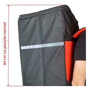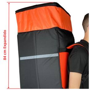 A mochila vem com ziper expansível para até 84cm de comprimento, ou seja, você poderá levar grandes volumes economizando nas entregas.