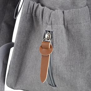 Fabricada em poliéster resistente, com detalhes em PU, ela oferece diferentes formas de uso: alça de mão, alça de ombro e engate para carrinho de bebê, proporcionando versatilidade total.