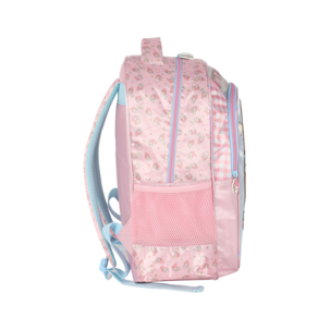 Design encantador: estampa exclusiva da My Melody com acabamento em efeito holográfico brilhante. Amplo espaço interno: ideal para guardar cadernos, livros, pastas e materiais escolares. Bolsos laterais em tela: perfeitos para garrafinhas e pequenos objetos. Alças ajustáveis e acolchoadas: proporcionam conforto mesmo em longos períodos de uso. Reforço interno e costuras resistentes: garantindo maior durabilidade. Zíper de fácil abertura: para mais praticidade no dia a dia.