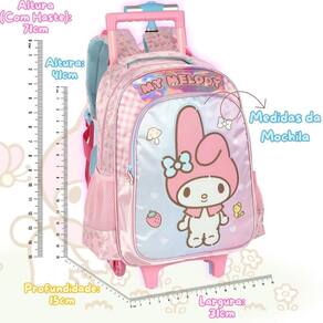 Mochila My Melody Rodas Meninas Passeio Escolar Infantil - Luxcel A mochila perfeita para o dia a dia escolar ou passeios, esta mochila une praticidade e charme. Com design encantador da personagem My Melody, ela conta com amplo espaço interno, bolsos funcionais e alça de mão retrátil para facilitar o transporte. Ideal para meninas que querem levar seus materiais com conforto e estilo. Características Mochila: - Pega de Transporte Manual - Bolso Lateral Telado Mesh com brilho - Bolso Frontal Utilitário com estampa - Zíper com Puxadores Personalizados - Logo em alto relevo - Estampa no cetim e personagem em aplique de PVC com glitter Especificações Mochila: - Marca: Luxcel - UP4YOU - Material: 70% Poliéster e 30% PVC - Forro: Poliéster - Medidas Aprox. axlxp : 41cm x 31cm x 15cm - Tema: My Melody - Amigos da Hello Kitty - Cor: Rosa - Capacidade Aprox. litros : 19 litros - Peso: 800g - Polegadas da mochila: 16 Conteúdo da Embalagem Ic42442srm - 1x Mochila de Rodas My Melody - Luxcel - UP4YOU As cores podem variar entre as imagens mostradas acima e o produto. Imagens meramente ilustrativas. Todas as informações divulgadas são de responsabilidade exclusiva do fabricante. de 90 dias contra defeito de fabricação Marca: Não Informado Ean: 7896694353903