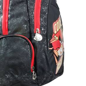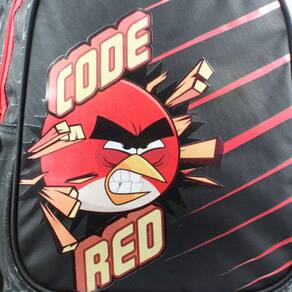 | Exterior: Mochila notebook possui um compartimento principal com zíper e espaço para notebook, na frente possui um outro compartimento com fecho de zíper também nesse compartimento tem bolos com espaço para canetas e cartão. Na lateral possui um bolso com zíper a na outra lateral um bolso com tela. Todos os cursores são personalizados Angry Birds. |