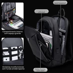 Mochila notebook impermeável executiva preta Descrição: Leve mais praticidade e estilo para o seu dia a dia com esta mochila executiva para notebook. Ideal para quem busca um produto moderno resistente confortável e multifuncional. Com design sofisticado e acabamento premium é perfeita para o trabalho faculdade viagens ou uso diário. Seu material impermeável protege seus pertences da chuva e respingos. Possui compartimentos espaçosos e divisórias internas acolchoadas que garantem segurança para seu notebook documentos e objetos pessoais. Unissex e versátil atende tanto ao público masculino quanto feminino sendo também ideal para motoboys motoqueiros e profissionais em movimento. Conteúdo da embalagem Características Design moderno e Modelo expansível com grande capacidade interna Material resistente e 100% impermeável Alças ajustáveis e acolchoadas para maior conforto Zíper com sistema antifurto Divisória interna acolchoada para notebook Compartimentos organizadores para acessórios e documentos Ideal para uso diário escolar acadêmico ou Estilo unissex adaptável para qualquer ocasião Especificações Modelo: executiva premium Material: oxford impermeável de alta qualidade Cor: preta Compatibilidade: para notebooks de até 15.6 polegadas Dimensões aproximadas: 45 cm x 30 cm x 15 cm fechada Peso: 950 g Capacidade: média expansiva Tipo de uso: masculino feminino unissex Fechamento: zíper antifurto oculto Homologação Anatel: 112672315857 Marca: Não Informado