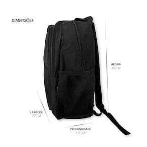 Mochila Reforçada para Notebook Essa mochila é ideal para quem carrega muito peso diariamente e precisa de mais conforto e segurança para transportar seus aparelhos eletrônicos e materiais escolares. Ideal para transportar notebook, tablet, livros pesados e até mesmo roupas e acessórios para viagens. Use para escola, faculdade, viagens, trabalho e no dia a dia. Além do compartimento principal, tem mais 1 compartimento espaçoso e 2 bolsos laterais de redinha para garrafas. ESPECIFICAÇÕES: Material: Poliéster Dimensões: 44cm altura x 29cm largura x 15cm profundidade Cor: Preta Capacidade: 18 Litros Ideal para notebook de 15'' CONTÉM: 01 Mochila reforçada para Notebook