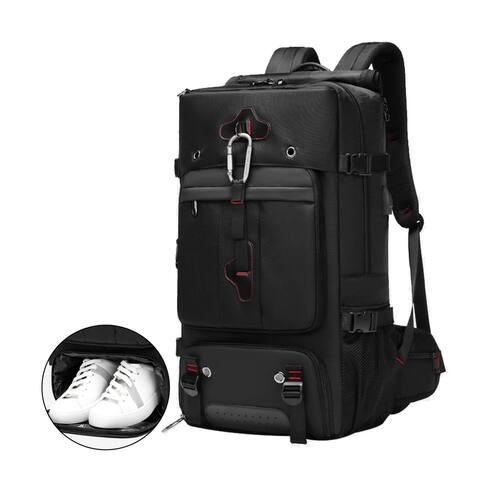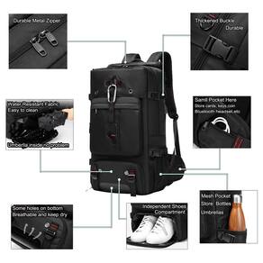 Mochila ODSSTAIPS para viajar de avião, mochila para laptop de 17 polegadas para homens, mochila de mão impermeável aprovada por voo, mochila de viagem de 70 litros para itens pessoais com compartimento para sapatos, preta