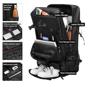 -?Mochila de viagem com compartimento para sapatos?A mochila de viagem expansível tem 25% de espaço extra para seu item pessoal no avião durante a viagem. O compartimento para sapatos na parte inferior protege bem o laptop. Possui poucos orifícios de ventilação com forro resistente à água, mantém a respirável e fácil de limpar. É a melhor mochila para transportar no avião.