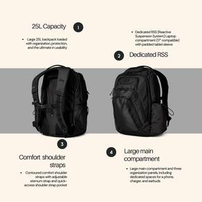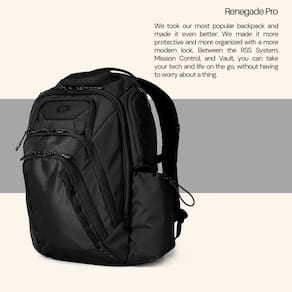 OGIO Mochila Renegade PRO (Renegade Pro, preta) - Mochila grande de 25 L cheia de organização, proteção e o máximo em usabilidade - Compartimento para laptop RSS (sistema de suspensão reativa) dedicado (compatível com 17 polegadas) com capa acolchoada para tablet. - Sistema de organização de controle de missão – (23) bolsos totais - Compartimento principal grande e três painéis de organização, incluindo espaços dedicados para celular, carregador e fones de ouvido. - Bolso protetor moldado Tech Vault para seus itens frágeis e valiosos