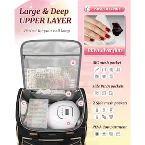 - 3 opções de transporte: o estojo organizador de unhas oferece 3 opções de transporte: mochila, portátil ou presa à sua mala; a bolsa de transporte de esmalte possui uma alça de ombro larga e ajustável, acolchoamento de espuma macia e malha sanduíche respirável na alça e nas costas para ajudar a aliviar o desconforto; estojo de viagem para unhas projetado com uma alça portátil acolchoada garante uma aderência confortável para facilitar o transporte; uma alça resistente na parte traseira permite que você prenda com segurança a bolsa sua alça de bagagem