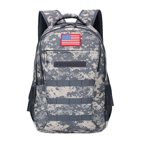 Mochilas para meninos de 8 a 12 anos para o ensino fundamental, bolsas táticas de 40 L para adolescentes, mochila escolar com bandeira americana de camuflagem com porta USB Tamanho aproximado da mochila infantil Dimensões de 50 cm x 35 cm x 15 cm e capacidade de tamanho adequado de 40 L. Dimensões de 50 cm x 35 cm x 15 cm e capacidade de 30 L de tamanho adequado. Cenário de aplicação Bons presentes para mulheres e homens! Perfeita para usar ao caminhar, viajar, acampar e outras atividades ao ar livre, uma ótima mochila de ensino médio para meninos adolescentes. Carregamento por Mochilas para meninos de 8 a 10 anos com porta de carregamento USB oferecem acesso rápido para carregar seu telefone, mãos livres, muito convenientes e elegantes. Design de cinto reforçado. Existem duas linhas triangulares em ambas as cintas costuradas no painel traseiro. Mais forte, pode suportar peso pesado e não fratura, solta fios. Zíperes Os zíperes são um componente muito importante de uma mochila escolar camuflada. Esta mochila digital camuflada adota zíperes resistentes e resistentes, fácil de deslizar e funciona sem problemas. Puxadores de zíper com cordão são convenientes de usar e garantem uso duradouro Alças ajustáveis. A alça flexível, com fivela forte e confiável, ajusta-se fácil e rapidamente ao comprimento que você precisar e permanecerá no comprimento escolhido sem soltar. Grande compartimento e bolso: Compartimento separado para laptop: serve para laptops com menos de 15,6 polegadas e Mac Compartimento principal: roupas finas, fones de ouvido, livros, revista, câmera, etc. Compartimento frontal: para iPhone, caneta, chaves, carteira, bolsa, óculos e outros itens pequenos Suporte para garrafa de água: bolsos de malha elástica durável, em ambos os lados, serve para garrafa de água, guarda-chuva compacto pequeno e outros itens Bolso traseiro pequeno: celular, carteira, fone de ouvido Conteúdo da embalagem: 1 mochila para meninos. 1 cabo de carregamento em mochila camuflada. Observação: a descrição da faixa etária sugerida é "acima de 10 anos" - Mochila camuflada com porta de carregamento USB: há portas duplas no cinto: a porta USB com cabo de carregamento integrado oferece uma maneira mais conveniente e fácil de carregar seu telefone. Um conector de fone de ouvido lado a lado com porta USB oferece a melhor maneira de ouvir sua música. Assim, pode liberar suas mãos, fácil em viagens, eventos ao ar livre - Mochila de tamanho ideal para meninos: 35,56 cm x 15,2 cm x 50,8 cm, cerca de 40 L, 3 compartimentos suficientes para conter seu laptop de 15,6 polegadas, roupas finas, telefone, câmera, livros e outros itens. Pode ser usada como mochila masculina para o ensino fundamental, mochila camuflada para meninos, mochila de livros para homens - Durável e impermeável: a mochila infantil de camuflagem militar para meninos é feita de Oxford 600 Dpvc, a mochila militar é reforçada e com costura dupla em todos os pontos de desconforto, resistente, mas leve, à prova d'água (exceto a corrente com zíper), seca e rápida; os itens não serão molhados na chuva leve. O material de alta qualidade garante maior vida útil em acampamentos e atividades ao ar livre - Mochilas para adolescentes com sistema MOLLE: há orifícios multifuncionais para pendurar pequenos itens como vidro e bolsas adicionais. Pode ser usada como uma mochila militar para crianças, mochila militar para crianças. Perfeita para usar ao caminhar, viajar, acampar, fazer caminhadas e outras atividades ao ar livre, um ótimo pacote para viagens - Conforto e controle de qualidade: garantia de pelo menos 1 ano, qualquer dúvida de qualidade sobre esta mochila escolar outdoor plus para meninos, , ajudaremos a resolvê-la