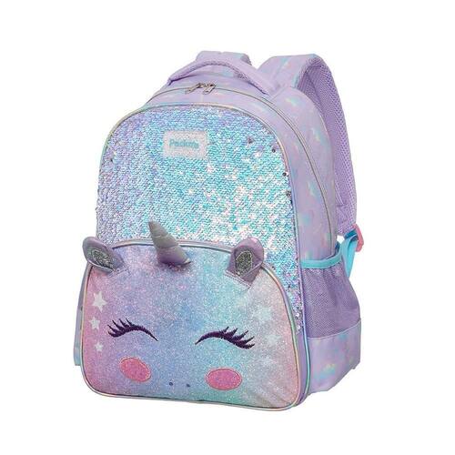 Mochila Pacific Pack Me Amazed Unicorn Lilás Cheia de brilho e personalidade, a mochila encanta com estampa divertida, lantejoulas vai-e-vem no painel frontal e logo em alto-relevo. Os detalhes fofos como orelhas 3D iridescentes, chifre metalizado, patches de pelúcia e chaveiro pompom tornam o visual ainda mais mágico. Conta com bolso frontal estilizado e bolsos laterais. Marca: Não Informado Ean: 7899690512411