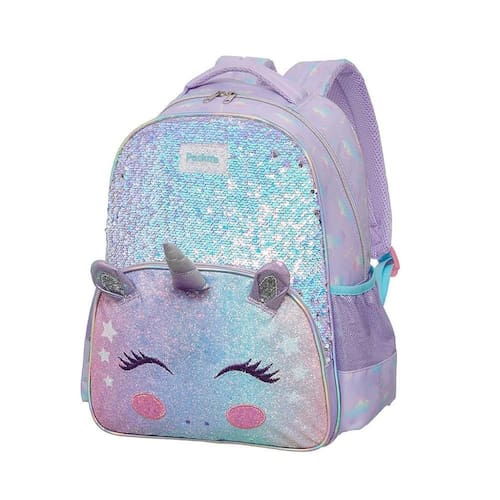 Mochila Pacific Pack Me Amazed Unicorn Lilás Cheia de brilho e personalidade, a mochila encanta com estampa divertida, lantejoulas vai-e-vem no painel frontal e logo em alto-relevo. Os detalhes fofos como orelhas 3D iridescentes, chifre metalizado, patches de pelúcia e chaveiro pompom tornam o visual ainda mais mágico. Conta com bolso frontal estilizado e bolsos laterais. Marca: Não Informado