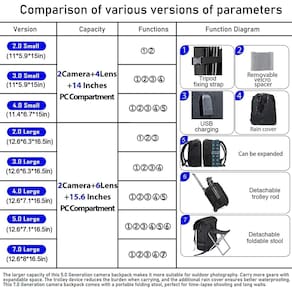 -?Multifunções?? O zíper de liga leve Caden não enferruja em 3 anos e não quebra em 5 anos; ? Um lado para armazenamento do iPad com adesivo fixado dentro da bolsa da câmera; ? Os acolchoamentos internos da bolsa são feitos de espuma PE de 7 camadas e placa de PP, protegem sua câmera de choques, são muito duráveis; ? Os cintos de ombro e a alça conectados à mochila da câmera usam a tecnologia de reforço de barra que com capacidade para até 50 kg (110,2 lb). Cuide melhor de suas câmeras, lentes, flashes, tripé e outros acessórios.