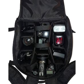 Capacidade: 2 câmeras profissionais sem grip, ou 1 câmera digital com grip com lente intercambiável e 1 objetiva standard, ou uma 1/2 tele (objetiva média) com 1 teleobjetiva, mais flash, bateria, carregador e alguns cabos.