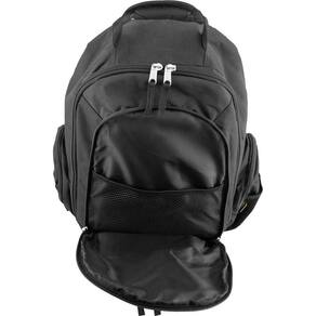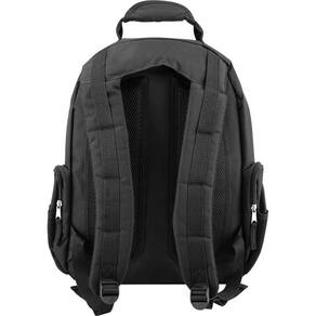 Possui alças almofadadas com reforço para ombros, alça para transporte, abertura total, com divisões/bolsos divididos em: parte externa com 3 bolsos com zíper, 3 bolsos sem zíper e 2 divisões e parte interna com 2 bolsos sem zíper e 1 compartimento para notebook/netbook.