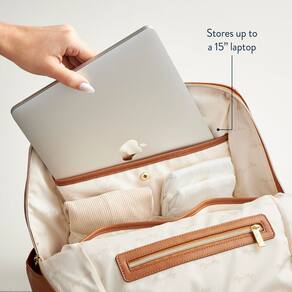 Itzy Ritzy Mochila Eras para fraldas – Mochila para bebês de grande capacidade com design neutro, 15 bolsos, trocador de fraldas, alças de carrinho de bebê e alças confortáveis, conhaque - 15 bolsos multifuncionais: esta elegante mochila de fraldas possui 15 bolsos para melhor organização, incluindo um compartimento dedicado para laptop que cabe em um dispositivo de até 15 polegadas. Medindo 33 cm C x 19 cm L x 43 cm A, oferece muito espaço para fraldas, lenços, roupas, brinquedos e todos os seus equipamentos de bebê – o suficiente para lidar com dias de parque, creches ou aventuras de fim de semana. - Acesso rápido e design inteligente: a mochila Eras de couro vegano para fraldas permite que você se mantenha ativo com suas confortáveis alças de mochila e alças embutidas para carrinho de bebê. Isso libera suas mãos para lidar com seu filho, pegar um café ou navegar pela calçada lotada. Além disso, o bolso frontal de fácil acesso com um fecho magnético permite que você pegue itens essenciais como lenços ou chupetas sem quebrar o passo. - MUDANDO DE ESTAÇÃO EM MOVIMENTO: Seja o campeão de fraldas com a bolsa Eras. Inclui um trocador de fraldas limpável e lavável na máquina com seu próprio bolso dedicado, mantendo a bagunça contida e proporcionando um local limpo para trocar fraldas em qualquer lugar. - Pronto para viagem com bolso para laptop: a vida com um pequeno não para no aeroporto. A mochila Eras transita perfeitamente da bolsa de fraldas para a bagagem de mão do dia a dia. A bolsa de bagagem oculta desliza sobre a maioria das alças de bagagem para facilitar a navegação no aeroporto. Precisa trazer itens essenciais de trabalho? O compartimento dedicado para laptop mantém você coberto. Além disso, o interior espaçoso comporta itens essenciais para fraldas, uma muda de roupa ou necessidades de viagem. - O estilo encontra a funcionalidade: feita de couro vegano premium, esta mochila apresenta um design limpo, neutro e minimalista que complementa seu visual diário. Seja você um novo pai, um profissional experiente ou alguém que precisa de uma mochila elegante e funcional, a mochila Eras é uma escolha perfeita. Ela permite que você mostre seu estilo pessoal enquanto mantém você organizado e pronto para qualquer coisa que a paternidade oferecer.