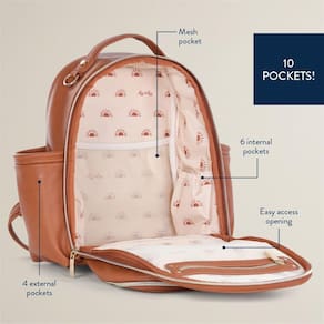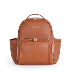 Itzy Ritzy Mochila para fraldas – Mochila Boss de grande capacidade com bolsos para garrafa, Conhaque - Design elegante e funcional: a mochila Itzy Mini Plus é tão elegante quanto funcional! Nossa mochila de couro vegano para fraldas tem o tamanho perfeito para pegar e sair para passeios rápidos ou quando você só precisa embalar os itens essenciais. - Amplo armazenamento com 10 bolsos: esta elegante bolsa de fraldas para bebês possui 10 bolsos no total – 6 internos e 4 externos – incluindo dois bolsos para mamadeira e um "bolso para os pais" de fácil acesso (completo com cordão de chave) para manter os itens essenciais da mãe e do pai ao alcance. - Inclui almofada de troca fácil de limpar: cada bolsa de fraldas Itzy Ritzy Mini Plus inclui um trocador de couro vegano fácil de limpar. O trocador tem seu próprio bolso com zíper na parte de trás da bolsa, oferecendo amortecimento extra ao usar a mochila. - ESTABILIDADE E PROTEÇÃO MELHORADAS: Esta elegante bolsa de fraldas está equipada com pés de borracha resistentes e trançados na base que garantem que a mochila permaneça na vertical, ajudam a manter sua parte inferior limpa e protege contra desgaste. - Bolsa de fraldas chique: carregue como uma bolsa de fraldas chique pela alça ou use-a confortavelmente como uma mochila com alças de ombro confortáveis e ajustáveis. Ela funciona perfeitamente como uma bolsa de uso diário para você e seu parceiro, adaptando-se às suas necessidades com facilidade.