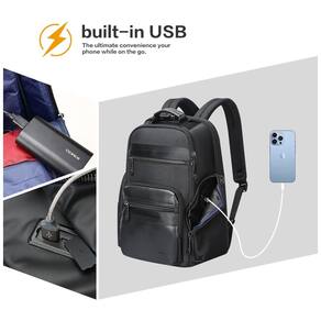 VIAJE COM CAIXA Compartimento de flanela flexível acomoda laptop de até 15,6 , e garante uma leitura TSA de laptop na bolsa sem complicações na segurança do aeroporto. DESIGN ANTI ROUBO INVISÍVEL O zíper duplo oculto exclusivo aumenta a segurança de seus itens internos. Um bolso com zíper oculto para sua carteira e telefone. RESISTENTE À ÁGUA Couro de microfibra resistente à água e náilon balístico durável. A massagem e o design respirável das costas evitam o calor e o suor. MULTIUSOS Melhor escolha para viagens, negócios, escritório ou escola, etc. Como presentes de dia dos pais DIMENSÕES EXTERIORES 17,8 x 14 x 9,5 polegadas, 45 x 35 x , Peso 1,2 kg, Capacidade 30L Marca: Não Informado