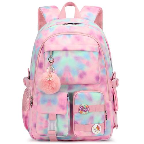 Esta mochila escolar para meninas é feita de tecido de nylon resistente à água de alta qualidade. Idade recomendada: 3-14 anos - ?Tamanho grande e presente?: As dimensões da mochila escolar primária são 35 cm x 19 cm x 45 cm (C x L x A), peso: 700 g. Vem com compartimento acolchoado adequado para tablets de 13,3,15,6 e 16 polegadas. Esta mochila também vem com pingente de chave de bola fofa e emblema de personalidade como enfeites de mochila tornam a mochila mais moderna e exclusiva - ?Material impermeável e zíper suave?: a mochila campus é feita de tecido de nylon à prova d'água, ultraleve de alta densidade e forro de poliéster com estampa fofa. O fecho de zíper de metal é utilizado pelos zíperes de qualidade premium para garantir o uso duradouro - ?Segurança e confortável?: o cinto atencioso em ambos os lados pode criar uma base sólida de suporte se você estiver embalando muitas coisas nas mochilas femininas. As alças largas e espessas em forma de S são bem acolchoadas, ajustáveis e confortáveis de carregar. O cinto de bagagem na parte de trás pode ser colocado na bagagem/mala para tornar sua viagem mais conveniente - ?Vários compartimentos e grande capacidade?: a mochila de viagem leve para mulheres tem 5 bolsos separados de tamanhos diferentes e dois bolsos laterais que atendem ao seu armazenamento diário. Os três bolsos frontais podem guardar dispositivos de carregamento e outros itens pequenos, convenientes para sua organização diária. O bolso principal inclui capa acolchoada para laptop com cinto elástico e bolsos internos ocultos com zíper. Os bolsos frontais para ferramentas também vêm com vários compartimentos para fornecer espaço espaçoso para as necessidades - ?Para todas as idades e ocasiões? A bolsa grande para livros é elegante o suficiente para uso casual e estudantil, enquanto o design oferece multifuncionalidade. A bolsa de mochila é perfeita para jovens adolescentes, meninas e mulheres. A mochila básica multiuso para a maioria das suas necessidades, fácil de combinar com suas roupas, adequada para viagens curtas, trabalho, compras, universidade, escola, etc.