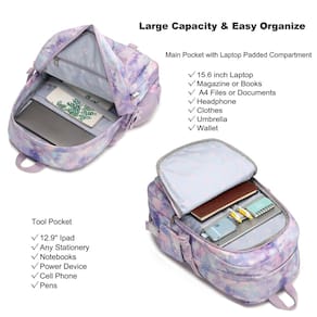 Esta mochila escolar para meninas é feita de tecido de nylon resistente à água de alta qualidade. Idade recomendada: 3-14 anos - ?Tamanho grande e presente?: As dimensões da mochila escolar primária são 35 cm x 19 cm x 45 cm (C x L x A), peso: 700 g. Vem com compartimento acolchoado adequado para tablets de 13,3,15,6 e 16 polegadas. Esta mochila também vem com pingente de chave de bola fofa e emblema de personalidade como enfeites de mochila tornam a mochila mais moderna e exclusiva - ?Material impermeável e zíper suave?: a mochila campus é feita de tecido de nylon à prova d'água, ultraleve de alta densidade e forro de poliéster com estampa fofa. O fecho de zíper de metal é utilizado pelos zíperes de qualidade premium para garantir o uso duradouro - ?Segurança e confortável?: o cinto atencioso em ambos os lados pode criar uma base sólida de suporte se você estiver embalando muitas coisas nas mochilas femininas. As alças largas e espessas em forma de S são bem acolchoadas, ajustáveis e confortáveis de carregar. O cinto de bagagem na parte de trás pode ser colocado na bagagem/mala para tornar sua viagem mais conveniente - ?Vários compartimentos e grande capacidade?: a mochila de viagem leve para mulheres tem 5 bolsos separados de tamanhos diferentes e dois bolsos laterais que atendem ao seu armazenamento diário. Os três bolsos frontais podem guardar dispositivos de carregamento e outros itens pequenos, convenientes para sua organização diária. O bolso principal inclui capa acolchoada para laptop com cinto elástico e bolsos internos ocultos com zíper. Os bolsos frontais para ferramentas também vêm com vários compartimentos para fornecer espaço espaçoso para as necessidades - ?Para todas as idades e ocasiões? A bolsa grande para livros é elegante o suficiente para uso casual e estudantil, enquanto o design oferece multifuncionalidade. A bolsa de mochila é perfeita para jovens adolescentes, meninas e mulheres. A mochila básica multiuso para a maioria das suas necessidades, fácil de combinar com suas roupas, adequada para viagens curtas, trabalho, compras, universidade, escola, etc.
