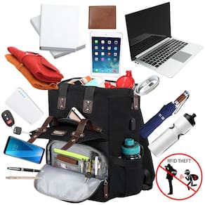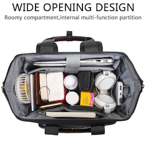 Design de abertura grande Na ponta dos seus dedos, sem pressa. Não mexa com a palheta e o lugar. Fácil de guardar e tirar. Grande capacidade e compartimentos espaçosos Bolsos internos: 1 compartimento para laptop acolchoado. Serve para até 39,6 cm. 1 compartimento para iPad acolchoado. - Ampla abertura na parte superior e traseira. 1 bolso principal espaçoso. Mantenha coisas diárias como fichários, livros, roupas, etc. 1 bolso com zíper. Guarde carteira/passaporte, etc. 2 bolsos abertos. Guarde telefones, óculos de sol e outros itens pequenos. 2 bolsos laterais. Guarde para pequenas garrafas de água, copos, guarda-chuva, etc. Bolsos externos: 2 bolsos externos frontais. 1 bolso traseiro antifurto com zíper. - ?Mochila grande para laptop?: 43 x 30 x 21 cm, capacidade: 30 L. Nylon resistente e repelente à água com zíperes de metal resistentes. Design elegante e moderno, espaçoso para tudo o que você precisa, uma boa escolha para viagens diárias, viagens de negócios, mochila para mulheres, mochila de trabalho, bolsa de mão etc. - ?Design amplo e aberto?: esta mochila de viagem para laptop tem uma estrutura retangular para manter o suporte grande, proporcionando acesso visível e fácil aos itens na parte inferior. Chega de cavar. Pode ter 19,8 cm de largura aberta. As bordas reforçadas e a estrutura de aço do compartimento principal mantêm a ótima forma da bolsa e são resistentes - Vários bolsos: 2 bolsos externos, 2 bolsos externos em ambos os lados, 1 bolso principal espaçoso, 7 bolsos internos, 1 bolso interno com zíper traseiro. Bolso principal com compartimento dedicado para laptop de 17,3 polegadas, bolso para tablet para iPad de 10,5 polegadas. Espaçosa o suficiente para guardar seus livros A4, iPad, Kindle, celular, carteira, guarda-chuva, cosméticos, etc - Conforto e conveniência: alça de ombro larga acolchoada ajustável, libera sua pressão nas costas e nos ombros. A alça de bagagem pode ser facilmente inserida e fixada à alça do carrinho ou mala, o que a torna muito conveniente de transportar; com uma porta de carregamento USB estendida na lateral da mochila e um cabo de carregamento embutido, ótimo carregamento fácil do seu telefone conectando seu carregador portátil (o Power Bank não está incluído) - Bolsa multifuncional: a função antirroubo da aba magnética de abertura frontal e o bolso traseiro com zíper podem proteger seus pertences. Esta mochila pode ser uma excelente companhia para universidade, viagens, negócios, uso diário e atividades ao ar livre; alça de couro exclusiva. O design manual torna esta bolsa boa para o trabalho como uma bolsa de mão de um ombro. Prático Natal Ano Novo para amigos, professores ou dia das mães - Este item não se destina a ser utilizado por crianças menores de 12 anos.