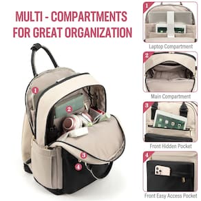 LOVEVOOK Mochila para laptop para mulheres e meninas, mochila de computador à prova d'água de 15,6 polegadas para estudantes, escola, linda bolsa para computador, Preto e bege, 15,6 polegadas - Vários compartimentos: um total de 4 compartimentos: 1 compartimento separado para laptop, 1 compartimento principal e 2 compartimentos frontais fornecem multifuncional para o seu computador, pasta A4, livros, roupas, etc. - ? Proteção para laptop? – O compartimento dedicado para laptop serve para laptop de até 15,6 polegadas, vem com uma alça elástica que oferece a proteção ideal para o seu laptop. O compartimento para tablet serve para laptop de 13,3 polegadas, iPad de 12,9 polegadas. Ótima ideia para alguém com vários dispositivos eletrônicos. - Conveniência em movimento: com uma alça de bagagem na parte de trás, permite que a mochila se encaixe com segurança na alça de uma mala com rodinhas - alivie o peso em sua jornada. Bolso traseiro oculto encostado no corpo do usuário. É difícil roubar seus pertences sem você sentir. Vamos viajar. - Porta de carregamento USB – Com cabo de carregamento interno e porta USB externa, a mochila oferece uma maneira mais conveniente e fácil de carregar seus dispositivos. Não é necessário manter o carregador portátil na mão, facilitando a vida. - 👍 Durável e à prova d'água👍 – Uma mochila feita de tecido de nylon de alta densidade, o material tratado torna LOVEVOOK mochila mais forte e resistente à água. Leve: 800 g. Tamanho: 29 cm C x 43 cm A x 18 cm P.