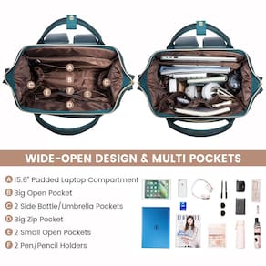 LOVEVOOK Mochila feminina de couro para laptop de 15,6 polegadas, bolsa de viagem, enfermeira, professora, bolsa de computador e laptop, bolsa de trabalho universitária profissional com porta USB, - Mochila feminina de couro LOVEVOOK atualizada para laptop?: Costuras reforçadas e resistentes. Feita de couro PU impermeável de alta qualidade, alças de ombro grossas, alças de couro exclusivas, zíperes antiderrapantes. Resistente e durável. Total de 2 compartimentos e 19 bolsos, fácil de organizar todas as necessidades de trabalho, suprimentos universitários e itens essenciais de viagem. Dimensões: 42 x 30 x 19,8 cm, peso: 1,2 kg. - Mochila acolchoada estilosa para laptop ?: Cabe bem em laptops de até 15,6 polegadas, compartimento para tablet para iPad de 12,9 polegadas. Esta mochila feminina é acolchoada em todos os lados e na parte inferior. O compartimento dedicado para laptop com algodão acolchoado costurado ao redor maximiza a proteção física de seus dispositivos eletrônicos. - Mochila universitária profissional com abertura ampla: as bordas reforçadas e a estrutura de aço do compartimento principal mantêm a forma perfeita da bolsa e o uso durável. Muito espaço para tudo para ajudar a se manter organizado e acessar rapidamente. Profissional e bem feita para o trabalho, negócios, viagens, deslocamento, faculdade, professor, enfermeira, uso diário como um presente prático para mulheres. - ?Ótima mochila de viagem para viajar de avião com porta de carregamento USB?: Tamanho perfeito para caber sob o assento do avião e fixa-se à alça elevada da mala para facilitar a viagem. Nossa mochila de viagem LOVEVOOK de couro está equipada com uma porta de carregamento USB integrada, fácil de carregar seu telefone quando estiver em movimento (não inclui o carregador portátil). - ??Compra sem risco e garantia de qualidade?: A LOVEVOOK está comprometida em fornecer aos nossos clientes mochilas e serviços de alta qualidade. A mochila feminina de couro LOVEVOOK oferece atendimento ao cliente 12 horas, devolução sem motivo em 90 dias e política de garantia de 1 ano.