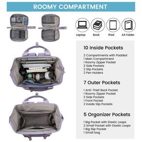 LOVEVOOK Mochila feminina para laptop, bolsa de enfermeira, trabalho, viagem, computador, Roxo-roxo, Mochilas de viagem - Design de abertura ampla: inspirada em bolsas de enfermeira, esta mochila feminina para laptop possui uma ampla abertura que permite que você veja facilmente todos os seus itens dentro e acesse rapidamente o que você precisa! Feita com poliéster de alta qualidade, alças grossas, zíperes personalizados elegantes e costura reforçada, esta mochila garante uma experiência de usuário perfeita - Mochila de viagem feminina: viajar com esta bolsa de viagem de item pessoal é muito fácil, graças à alça do carrinho que pode ser anexada à sua bagagem. Os bolsos laterais elásticos são perfeitos para guardar garrafas de água e, com um bolso oculto antirroubo, você pode viajar com tranquilidade - Mochila para mulheres: com muitos bolsos internos e uma grande capacidade de armazenamento, esta mochila de trabalho feminina é perfeita para organizar seus pertences. A bolsa pequena adicional é ótima para armazenar itens pequenos, como um carregador de laptop ou outros acessórios - Porta de carregamento conveniente: esta mochila para laptop tem uma porta USB para carregar seu dispositivo a qualquer hora, em qualquer lugar (você deve colocá-la no seu carregador portátil). É a companhia perfeita para o trabalho, viagens, viagens, faculdade ou uso diário - Mochila estética: não perca o presente perfeito para você ou alguém especial no Dia do Professor, Dia dos Namorados, Dia das Mães, Natal ou qualquer outra ocasião. Atualize sua mochila hoje mesmo com esta mochila versátil e elegante para laptop