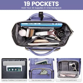 LOVEVOOK Mochila feminina para laptop, 15,6 polegadas, profissional, para viagem, para computador, laptop, enfermeira, professora, mochila, impermeável, para trabalho universitário, mochila de - ?Qualidade atualizada e grande capacidade?: Zíperes de metal antiderrapantes duplos atualizados. Tecido de poliéster resistente à água e durável, costuras especialmente reforçadas. Alça e alças de ombro confortáveis e resistentes. Todos são resistentes e duráveis. Dimensões: 30 cm C x 40 cm A x 19 cm P, Peso: 800 g. Total de 2 compartimentos e 19 bolsos para o seu computador, necessidades de trabalho, suprimentos universitários e itens essenciais de viagem. - Mochilas de trabalho para professores e enfermeiras abertas?: As bordas reforçadas e a estrutura de aço do compartimento principal mantêm a forma perfeita da bolsa, a parte superior abre, você pode ver suas coisas facilmente e acessar rapidamente, mais facilmente organizada. Mochila de professor com compartimento para laptop, bolsas de enfermeiras e bolsas para trabalho, mochila de trabalho para mulheres profissionais. - Mochila feminina acolchoada para laptop e bolsas de computador: o compartimento acolchoado embutido para laptop com algodão acolchoado é compatível com laptop de até 15,6 polegadas, esta bolsa feminina vem com uma alça elástica que oferece a proteção ideal para o seu laptop, compartimento para tablet de 13,3 polegadas, iPad de 12,9 polegadas. Ótima ideia de mochila para qualquer pessoa com vários dispositivos eletrônicos. - ?Ótima mochila de viagem aprovada por companhias aéreas com porta USB?: Mochila para viajar de avião. Tamanho perfeito para caber sob o assento do avião. A alça de bagagem permite que a mochila se encaixe na bagagem/mala para facilitar o transporte. O bolso traseiro oculto protege seus itens valiosos de ladrões. Com cabo de carregamento interno e porta USB externa, a linda mochila oferece uma maneira mais conveniente de carregar seus dispositivos. - ??Presentes práticos e garantia de qualidade?: Esta bolsa de laptop feminina foi bem feita para o trabalho, negócios, viagens, deslocamento, faculdade, professor, enfermeira, uso diário. Presentes práticos para todas as pessoas de quem você gosta. A mochila feminina para laptop LOVEVOOK oferece atendimento ao cliente em 12 horas, devolução sem motivo em 30 dias e política de garantia de 1 ano.