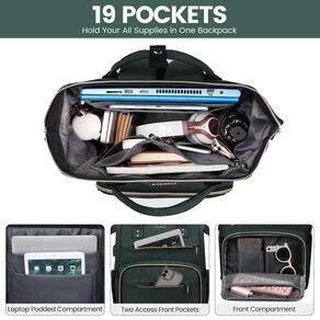 LOVEVOOK Mochila feminina para laptop, 15,6 polegadas, profissional, para viagem, bolsa para computador, laptop, enfermeira, professora, mochila, impermeável, bolsa de trabalho com porta USB, verde - ?Qualidade atualizada e grande capacidade?: Zíperes de metal antiderrapantes duplos atualizados. Tecido de poliéster resistente à água e durável, costuras especialmente reforçadas. Alça e alças de ombro confortáveis e resistentes. Todos são resistentes e duráveis. Dimensões: 30 cm C x 40 cm A x 19 cm P, Peso: 800 g. Total de 2 compartimentos e 19 bolsos para o seu computador, necessidades de trabalho, suprimentos universitários e itens essenciais de viagem. - Mochilas de trabalho para professores e enfermeiras abertas?: As bordas reforçadas e a estrutura de aço do compartimento principal mantêm a forma perfeita da bolsa, a parte superior abre, você pode ver suas coisas facilmente e acessar rapidamente, mais facilmente organizada. Mochila de professor com compartimento para laptop, bolsas de enfermeiras e bolsas para trabalho, mochila de trabalho para mulheres profissionais. - Mochila feminina acolchoada para laptop e bolsas de computador: o compartimento acolchoado embutido para laptop com algodão acolchoado é compatível com laptop de até 15,6 polegadas, esta bolsa feminina vem com uma alça elástica que oferece a proteção ideal para o seu laptop, compartimento para tablet de 13,3 polegadas, iPad de 12,9 polegadas. Ótima ideia de mochila para qualquer pessoa com vários dispositivos eletrônicos. - ?Ótima mochila de viagem aprovada por companhias aéreas com porta USB?: Mochila para viajar de avião. Tamanho perfeito para caber sob o assento do avião. A alça de bagagem permite que a mochila se encaixe na bagagem/mala para facilitar o transporte. O bolso traseiro oculto protege seus itens valiosos de ladrões. Com cabo de carregamento interno e porta USB externa, a linda mochila oferece uma maneira mais conveniente de carregar seus dispositivos. - ??Presentes práticos e garantia de qualidade?: Esta bolsa de laptop feminina foi bem feita para o trabalho, negócios, viagens, deslocamento, faculdade, professor, enfermeira, uso diário. Presentes práticos para todas as pessoas de quem você gosta. A mochila feminina para laptop LOVEVOOK oferece atendimento ao cliente em 12 horas, devolução sem motivo em 30 dias e política de garantia de 1 ano.