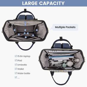 Esta mochila tem muitos bolsos. É perfeito para o local de trabalho. É espaçoso. Você é capaz de carregar seu iPad, 2 grandes fólios, 2 (1/2) livros de polegada, carteira, retoque básico de maquiagem, óculos de sol, garrafa de água, chaves e carregador de iPhone. Fácil de carregar como uma bolsa ou mochila. A qualidade da costura é ótima e não há um monte de cordas soltas ou bordas mal ajustadas. Os zíperes dourados são muito bonitos — resistentes e com zíper fácil. Geral: Esta bolsa é um excelente ajuste para alguém que está procurando uma bolsa de computador de alta qualidade e quer ficar bem enquanto usa! Então vá em frente. - Nylon, cabe até 39,6 cm, mochila de trabalho elegante - Ferragens prateadas, bolso lateral elástico para garrafa de água ou guarda-chuva, com uma porta de carregamento USB e capa para carrinho, bolso traseiro antirroubo - Compartimentos espaçosos e robustos e organizados. É resistente o suficiente para ficar em pé e não cair quando embalada, e você aproveitará a maneira como ela abre e permanece aberta! você pode encontrar tudo o que precisa sem se atrapalhar cegamente em um fundo escuro - Multiuso: seu visual simples e elegante de cores listradas a torna uma mochila para laptop, mochila de trabalho, mochila de viagem, mochila universitária e mochila. Também é leve nas costas, mesmo com livros didáticos, pastas e laptops dentro - Compre com confiança: esta mochila vem com uma política de devolução de 90 dias e suporte ao cliente 7D/24h. Mantenha seus itens essenciais de negócios organizados em movimento com facilidade e estilo