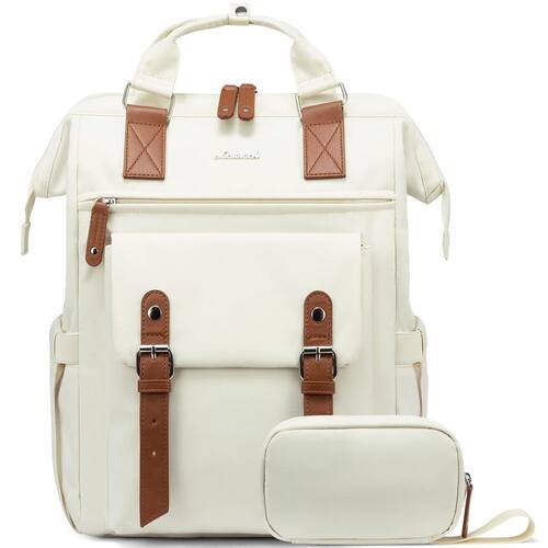 LOVEVOOK Mochila para laptop feminina, trabalho, viagem, viagem, negócios, bolsa para computador, professor, médico, enfermeira, bolsa universitária, 15,6 polegadas, bege - marrom-marrom, Bege-marrom, - Bolsa mochila durável para mulheres: Dimensão-28 cm C x 14 cm L x 40 cm A. Tamanho da caixa organizadora eletrônica: 19 cm C x 5 cm L x 10 cm A. Vem com um saco de pó para armazenamento. A mochila acolchoada com compartimento para laptop é uma ótima bolsa de laptop para mulheres no trabalho, aplicável a professores, médicos, enfermeiros, viajantes. Fácil de organizar todos os suprimentos e cabe bem em laptops de até 15,6 polegadas. - Muitos bolsos e armazenamento grande: a mochila para laptop feminina tem muitos bolsos para diferentes tipos de itens. Como uma bolsa de trabalho, mochila universitária ou bolsa de enfermagem (itens essenciais do campus de enfermagem), ela guarda muitas coisas e as mantém organizadas. A bolsa pequena adicional tem um bom tamanho para colocar algumas coisas pequenas ou até mesmo um carregador de laptop. A bolsa pode ser usada como organizador de eletrônicos, bolsa pequena, organizador de cabos de viagem, acessórios de enfermeira para trabalho ou organizador de cosméticos. - Essenciais de viagem para sua escapada: esta mochila de viagem com alça de carrinho pode liberar seus ombros. Os bolsos laterais são elásticos para caber em garrafas de água mais grossas. Com um bolso antifurto oculto, você não precisa se preocupar com ladrões patrocinando sua mochila. - Mochila para laptop com porta USB: há uma porta de carregamento USB estendida na lateral da mochila e um cabo de carregamento embutido. Você pode carregar seu celular a qualquer hora e em qualquer lugar (excluindo o carregador portátil) - Mochila de computador perfeita para todas as ocasiões. Esta mochila com compartimento para laptop é ótima para trabalho, viagens, deslocamento, faculdade, hospital, uso diário. Presentes práticos para todas as pessoas de quem você gosta. É a melhor escolha como presente para mulheres ou homens em aniversários, aniversários e qualquer outro festival.