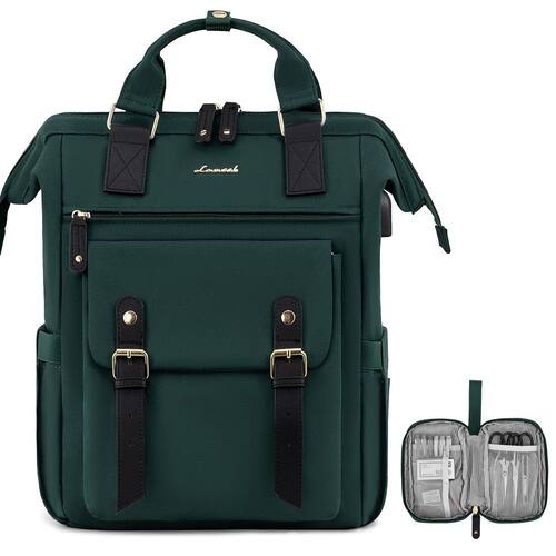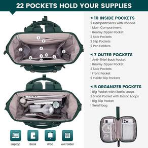 LOVEVOOK Mochila feminina para laptop, bolsa de enfermeira, trabalho, viagem, computador, Verde escuro, Mochilas Daypack - Design de abertura ampla: inspirada em bolsas de enfermeira, esta mochila feminina para laptop possui uma ampla abertura que permite que você veja facilmente todos os seus itens dentro e acesse rapidamente o que você precisa! Feita com poliéster de alta qualidade, alças grossas, zíperes personalizados elegantes e costura reforçada, esta mochila garante uma experiência de usuário perfeita - Mochila de viagem feminina: viajar com esta bolsa de viagem de item pessoal é muito fácil, graças à alça do carrinho que pode ser anexada à sua bagagem. Os bolsos laterais elásticos são perfeitos para guardar garrafas de água e, com um bolso oculto antirroubo, você pode viajar com tranquilidade - Mochila para mulheres: com muitos bolsos internos e uma grande capacidade de armazenamento, esta mochila de trabalho feminina é perfeita para organizar seus pertences. A bolsa pequena adicional é ótima para armazenar itens pequenos, como um carregador de laptop ou outros acessórios - Porta de carregamento conveniente: esta mochila para laptop tem uma porta USB para carregar seu dispositivo a qualquer hora, em qualquer lugar (você deve colocá-la no seu carregador portátil). É a companhia perfeita para o trabalho, viagens, viagens, faculdade ou uso diário - Mochila estética: não perca o presente perfeito para você ou alguém especial no Dia do Professor, Dia dos Namorados, Dia das Mães, Natal ou qualquer outra ocasião. Atualize sua mochila hoje mesmo com esta mochila versátil e elegante para laptop