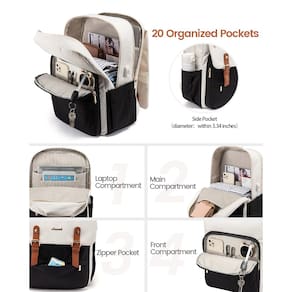 LOVEVOOK Mochila feminina para laptop, viagem, computador, 43 cm, mochila de mão para professores, trabalho, negócios, faculdade, Preto e branco, Moderno - ?Grande capacidade e 20 bolsos organizados?: com compartimento principal e vários bolsos, esta mochila feminina facilita manter sua carteira, chaves, fones de ouvido, documentos (A4) e itens essenciais do dia a dia organizados. Garrafa de água (diâmetro: 8,5 cm) pode caber no bolso lateral. - ?Design exclusivo e prático?: esta mochila de alta qualidade é feita com uma fivela dupla exclusiva e design de vários bolsos, adicionando um toque moderno à sua praticidade. Feita de tecido premium, esta mochila para laptop é o acessório perfeito para ocasiões como viagens, trabalho, negócios, faculdade e assim por diante. - ?Alça e tamanho para viagem ?: a alça de bagagem permite que esta mochila de viagem se prenda à bagagem/malas, tornando sua viagem mais conveniente. Dimensões: 30 cm C x 17 cm L x 43 cm (AERLINA APROVADA) - ?Material de alta qualidade e design versátil?: Feita de poliéster premium, esta mochila para computador é a mistura ideal de estilo e utilidade. Se você precisa de uma mochila, mochila de trabalho, bolsa de enfermeira, mochila de professor ou mochila de viagem, esta bolsa tem o que você precisa. - ?Atendimento ao cliente eficaz?: A LOVEVOOK está comprometida em fornecer aos nossos clientes bolsas e serviços de alta qualidade. Oferecemos atendimento ao cliente 12 horas. Se você tiver algum problema com nossas bolsas, e faremos o nosso melhor para consertar as coisas.