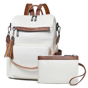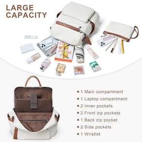Mochila feminina de couro para laptop Shrrie Material externo: couro PU de alta qualidade Tamanho: (C) 15 x (L) 19 x (A) 38 cm Peso: 900 g. Estrutura: 11 bolsos Mochila feminina de couro para viagem com detalhe de bolsa de ombro Design de mochila aberta superior Costura reforçada. Parte traseira da bolsa com costura reforçada para sua durabilidade. Material de alta qualidade. Todos os acessórios são feitos de liga metálica, anticorrosão, modernos e duráveis. Formas de transporte conversíveis A alça longa removível permite que a bolsa seja usada como bolsa de ombro ou mochila. - ?Mochila de couro para laptop feminina?A mochila para laptop é feita de couro vegano impermeável de alta qualidade, resistente e durável. Total de 9 bolsos, fácil de organizar todas as necessidades de trabalho, suprimentos universitários e itens essenciais de viagem. - ?Mochila moderna acolchoada para computador?A mochila feminina tem um bolso para laptop de 15,6 polegadas. O compartimento dedicado para laptop com algodão acolchoado costurado ao redor maximiza a proteção física de seus dispositivos eletrônicos. - ?Grande capacidade?A mochila de trabalho de grande capacidade tem vários bolsos divisórios, fácil de guardar laptop, ipads, telefone, fichário, garrafa de água, guarda-chuva, revistas, canetas, carteira e assim por diante. Profissional e bem feita para trabalho, negócios, viagens, deslocamento, faculdade, professor, enfermeira, uso diário - ?Design prático de alça de bagagem?A mochila de couro feminina é projetada para viajar, ajuda você a liberar suas mãos e costas do fardo. Torne sua viagem mais conveniente e agradável. A mochila de viagem à prova d'água cabe sob o assento e também atende aos requisitos de bagagem de mão. - ?Presentes ideais?A mochila universitária Shrrie com compartimento para laptop é ótima para o trabalho, viagens, viagens, faculdade, hospital, viagem de negócios, escapada, etc. É uma boa escolha como presente para mulheres ou homens no Dia das Mães/Dia dos Pais, Dia de Ação de Graças, Dia de Natal, formatura, Dia dos Namorados, aniversário, Ano Novo e outros festivais.