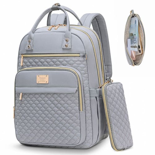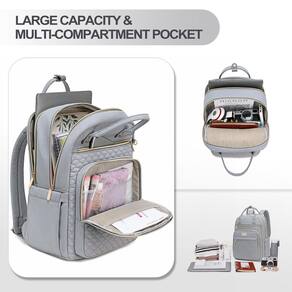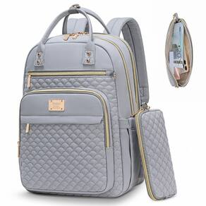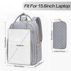 1 - ?Mochila e carteira moderna para laptop? A mochila para laptop com conjunto de carteira, feita de tecido de nylon resistente à água, resistente a arranhões e rasgos. Forro de algodão listrado personalizado de alta qualidade, zíperes banhados a ouro requintados, suave e durável. Tamanho da mochila: 30 cm C x 20 cm L x 43 cm A, tamanho da carteira: 11 cm C x 23 cm A, Capacidade da mochila: 30 L, Peso 9 kg, fácil de transportar, tornando-a conveniente para uso diário - ?Mochila de viagem de grande capacidade? Mochila para laptop com total de 5 compartimentos e 16 bolsos: 2 compartimentos principais grandes, 1 compartimento separado para laptop de 15,6 polegadas, 1 compartimento para iPad e 1 compartimento separado seco e molhado, para guardar o laptop, iPad, telefones, carregador, pasta, garrafa de água, guarda-chuva, guardanapo, revistas, roupas, canetas, carteiras e muito mais, bolsos amplos mantêm seus itens de viagem perfeitamente posicionados - Mochila multifuncional para o trabalho? A mochila é projetada com um compartimento protetor separado de espuma de algodão para laptop. O bolso de separação úmida e seca na frente pode guardar toalhas molhadas e cosméticos. O bolso antirroubo na parte traseira torna seu passaporte, carteira, celular e outros objetos de valor mais seguros sem se preocupar em ser roubado. A alça traseira para bagagem permite que você prenda facilmente a mochila ao carrinho, tornando sua viagem de trabalho mais fácil e agradável - ?Mochila multiusos resistente à água? Esta mochila feminina pode ser usada em todos os cenários, perfeita para trabalho, negócios, faculdade, viagens, viagens de avião, uso diário e atividades ao ar livre. Pode ser usada como mochila de trabalho, mochila universitária, mochila casual, mochila de viagem, mochila de viagem de avião, mochila de professor e mochila de enfermeira - ?Design perfeito e mochila universitária de alta qualidade? A aparência desta mochila feminina para laptop é feita de um design acolchoado delicado, o tecido externo é feito de material de nylon resistente à água de alta qualidade, com forro de algodão listrado. Você sempre pode confiar que é elegante e perfeita, as alças são reforçadas com rebites e cada ponto de desconforto da mochila é reforçado e costurado para durabilidade absoluta. É a melhor escolha para dar de presente