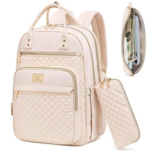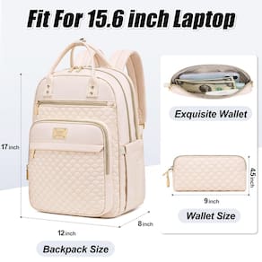 1 - ?Mochila e carteira moderna para laptop? A mochila para laptop com conjunto de carteira, feita de tecido de nylon resistente à água, resistente a arranhões e rasgos. Forro de algodão listrado personalizado de alta qualidade, zíperes banhados a ouro requintados, suave e durável. Tamanho da mochila: 30 cm C x 20 cm L x 43 cm A, tamanho da carteira: 11 cm C x 23 cm A, Capacidade da mochila: 30 L, Peso 9 kg, fácil de transportar, tornando-a conveniente para uso diário - ?Mochila de viagem de grande capacidade? Mochila para laptop com total de 5 compartimentos e 16 bolsos: 2 compartimentos principais grandes, 1 compartimento separado para laptop de 15,6 polegadas, 1 compartimento para iPad e 1 compartimento separado seco e molhado, para guardar o laptop, iPad, telefones, carregador, pasta, garrafa de água, guarda-chuva, guardanapo, revistas, roupas, canetas, carteiras e muito mais, bolsos amplos mantêm seus itens de viagem perfeitamente posicionados - Mochila multifuncional para o trabalho? A mochila é projetada com um compartimento protetor separado de espuma de algodão para laptop. O bolso de separação úmida e seca na frente pode guardar toalhas molhadas e cosméticos. O bolso antirroubo na parte traseira torna seu passaporte, carteira, celular e outros objetos de valor mais seguros sem se preocupar em ser roubado. A alça traseira para bagagem permite que você prenda facilmente a mochila ao carrinho, tornando sua viagem de trabalho mais fácil e agradável - ?Mochila multiusos resistente à água? Esta mochila feminina pode ser usada em todos os cenários, perfeita para trabalho, negócios, faculdade, viagens, viagens de avião, uso diário e atividades ao ar livre. Pode ser usada como mochila de trabalho, mochila universitária, mochila casual, mochila de viagem, mochila de viagem de avião, mochila de professor e mochila de enfermeira - ?Design perfeito e mochila universitária de alta qualidade? A aparência desta mochila feminina para laptop é feita de um design acolchoado delicado, o tecido externo é feito de material de nylon resistente à água de alta qualidade, com forro de algodão listrado. Você sempre pode confiar que é elegante e perfeita, as alças são reforçadas com rebites e cada ponto de desconforto da mochila é reforçado e costurado para durabilidade absoluta. É a melhor escolha para dar de presente
