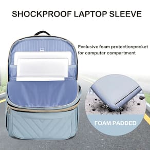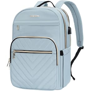 VANKEAN Mochila feminina para laptop de trabalho, elegante com porta USB, Acolchoada azul claro, Mochilas Daypack - Mochila com design azul e repelente de água: as mochilas femininas VANKEAN azul claro para laptop têm zíperes banhados a ouro requintados e textura de costura moderna. Detalhes do tamanho: 43 cm A x 32 cm C x 19,8 cm L. Peso 0,8 kg e fácil de transportar. O material exterior da mochila leve e elegante da VANKEAN é de nylon impermeável e resistente a arranhões com um interior de poliéster personalizado totalmente forrado e resistente a rasgos. - Mochila multifuncional com compartimento para laptop: Total de 5 compartimentos e dois bolsos laterais - 1 compartimento separado para laptop de 15,6 polegadas - além de uma capa extra acolchoada para tablets ou Kindle, 1 compartimento principal pode armazenar alto-falantes e arquivos comerciais enquanto ainda tem espaço para necessidades diárias, 1 compartimento frontal e 2 bolsos frontais oferecem muita capacidade para a organização - cartões, carteira, óculos de sol, etc. - Design da porta do carregador USB: as mochilas para laptop VANKEAN têm uma porta de carregamento USB externa e um cabo de carregamento embutido que pode ser facilmente conectado onde quer que você esteja (carregador portátil não incluído). Esta mochila USB oferece a você uma maneira mais conveniente de carregar seu telefone enquanto estiver em movimento. - Capa de proteção para laptop à prova de choque: o compartimento dedicado para laptop cabe em um laptop de até 15,6 polegadas, acolchoado com um bolso exclusivo de proteção de espuma para o seu laptop, além disso, o fecho aderente pode fixar o computador para evitar que ele caia. O compartimento para tablet serve para iPad de até 12,9 polegadas. Bolsos de malha para mouse, adaptador, cabo de carregamento. Tenha uma bolsa VANKEAN para computador, deixe-a proteger a segurança do seu computador. - Presentes confortáveis e ideais: alças ergonômicas, 1 alça superior durável - projetada para transporte confortável o dia todo. Chegue com estilo – uma alça de bagagem para deslizar facilmente sobre as alças da bagagem/mala. Elegante e sofisticada, esta mochila é perfeita para o trabalho, faculdade, negócios, viagens ou uso diário. Também é um ótimo presente para o trabalho, esportes, caminhadas, piqueniques, praia, acampamento, viagem de negócios, etc.