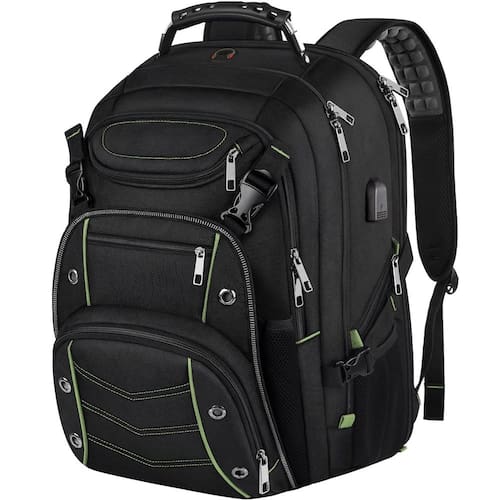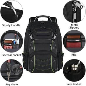 Mochila para adultos. Este item não se destina a ser utilizado por crianças menores de 12 anos. Mochila extra grande para laptop para jogos -- Tamanho externo da mochila de viagem de negócios extragrande: 56 x 43 x 25 cm. Capacidade: 60 l. Vários compartimentos oferecem excelente proteção para 2 laptops e tablets. Serve para a maioria dos laptops de 19,18,4, 18, 17, 15,6, 15 cm. Adequado para laptops de tamanho grande: Dell xps 18 1810/Asus rog g752vl-dh71/Asus G752VT /Asus G752jz/Msi ge72 apache 235/ROG G751JT MSI, para Alienware Acer HP Lenovo Grande laptop gamer ou mais laptops de 18,4, 19 polegadas e acima. - Mochila para adultos. Mochila extragrande para laptop para jogos -- Tamanho externo da mochila extra grande para viagens de negócios: 56 x 43 x 25 cm. Capacidade: 60 l. Vários compartimentos oferecem excelente proteção para 2 laptops e tablets. Serve para a maioria dos laptops de 19,18,4, 18, 17, 15,6, 15 cm. Adequado para o tamanho grande laptop: Dell xps 18 1810/Asus rog g752vl-dh71/Asus G752VT /Asus G752jz/Msi ge72 apache 235/ROG G751JT MSI, para Alienware Acer HP Lenovo Grande laptop gamer ou mais laptops de 18,4, 19 polegadas e acima. - Grande capacidade e porta de carregamento USB: o maior compartimento principal comporta roupas de viagem de 3 a 4 dias. Muitos bolsos ocultos podem acomodar muitos acessórios de viagem, artigos de papelaria, notebook, artigos de higiene pessoal, bolso lateral com zíper para facilitar o acesso essencial, porta USB externa com cabo de carregamento integrado oferece carregamento conveniente do seu celular e outros dispositivos eletrônicos. Um orifício para fone de ouvido externo dá fácil acesso ao uso do fone de ouvido. Mochila XL resistente feita de tecido de nylon de poliéster de qualidade. - Aprovado pela TSA e antirroubo RFID: desdobra a mochila extra grande livremente de 90 a 180 graus, fazendo você passar rapidamente pela segurança do aeroporto e manter os itens organizados, projetada para viagens de avião. Mochila grande para atividades internas/externas, serve como mochila para laptop universitário. Bolso RFID com identificação por radiofrequência RFID ajuda a proteger os dados pessoais codificados em seus cartões de crédito, documentos e passaportes. O bolso antirroubo na parte de trás da mochila, fácil de colocar seu telefone, bolsa e passaporte. - Mochila esportiva: para jogadores, espaço para todos os seus equipamentos esportivos e equipamentos universitários para que eles não percam nada, um lugar para tudo: garrafas de água, guarda-chuva, chuteiras, meias, caneleiras, jaqueta, lanches. O mais especial é o bolso externo, com alças de compressão ajustáveis para basquete, rúgbi e vôlei. O melhor amor para esportes, mulheres, homens e faculdade - Alça traseira para bagagem e alça de peito: O design de ventilação em forma de U nas costas ajuda na convecção de ar. Alças de ombro ajustáveis com acolchoamento ajudam a aliviar o desconforto do seu ombro. Uma alça de bagagem permite que a mochila se encaixe na bagagem/mala, deslize sobre o tubo da alça vertical para facilitar o transporte; a alça ajustável no peito deixa as alças de ombro mais apertadas. Além disso, a mochila universitária tem uma alça robusta e resistente com cabo de aço na parte superior para carregar.