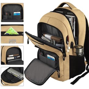 Feature: Luggage / Suitcase strap on the back is great to slide over the luggage tube and attached to your rolling luggage securely for easier transport. ease the heavy weight., less burden on your shoulder and back when on the go. The hidden theft proof Edição de Bolso designed on the back sits up against the wearer's body. Anti-Pickpocket back Edição de Bolso is difficult to steal personal items. Best Gift Ideas. Practical birthday gifts and functional present , traveling and work. mother, father, best friends. External pockets on both sides are made of elasticized mesh, expands to secure various size water bottles and compact umbrella Backpack with charge port. USB Charger port is a convenient external connection, it offers an easy access to charge your devices. Hook up your phone and be on the go.Headphone interface provide convenient to listen music. Multi-panel Airflow system provide relief when carrying heavy loads. Many padding on the back, shoulder straps and grab handle makes it comfortable to carry, barely feel the weight. 100% Brand New and made of High Density and Water Repellent Polyester Fabric, not easy get wet and ensure long lasting usage Separate Laptop Compartment: Fits 17 15.6 15 14 13 Inch Laptops and Macbook(Laptop over 17inch is not recommended) Worry-Free Warranty: We are committed to provide customer unique and high quality backpacks, Contact us if you have any issue, we will reply with you within 12 hrs. THIS ITEM IS NOT INTENDED FOR USE BY CHILDREN 12 AND UNDER. - Espaço de armazenamento e bolsos: um compartimento separado para laptop comporta laptop de 15,6 polegadas, bem como Macbook/laptop de 15 polegadas, 14 polegadas e 13 polegadas. Um compartimento espaçoso para iPad, mouse, carregador, fichários, livros, roupas, etc. Bolsos de malha na lateral para garrafa de água e guarda-chuva compacto organizam seus itens e são mais fáceis de encontrar. - Confortável e resistente: design confortável com fluxo de ar nas costas com acolchoamento ventilado de vários painéis espessos, mas macios, oferece o máximo suporte para as costas. Alças de ombro respiráveis e ajustáveis aliviam o desconforto do ombro. Alça superior acolchoada de espuma para um longo tempo de uso - Funcional e segura: uma alça de bagagem permite que a mochila se encaixe na bagagem/mala, deslize sobre o tubo da alça vertical para facilitar o transporte. Com um bolso oculto antirroubo na parte de trás protege seus itens valiosos de ladrões. tornando sua viagem e viagem mais convenientes onde quer que você vá. - Design de porta USB: com carregador USB embutido no exterior e cabo de carregamento embutido no interior, esta mochila USB oferece a você uma maneira mais conveniente de carregar seu telefone enquanto caminha. Conector de fone de ouvido: você pode ouvir sua música favorita em movimento com as mãos livres. - Material durável e sólido: feito de tecido de poliéster resistente à água e durável com zíperes de metal. Garanta um uso seguro e duradouro todos os dias e fins de semana. Serve bem como bolsa de trabalho no escritório, bolsa de carregamento USB fina, perfeita para viagens de negócios, escapadelas de fim de semana, compras e atividades ao ar livre no dia a dia. Bom presente para a faculdade.